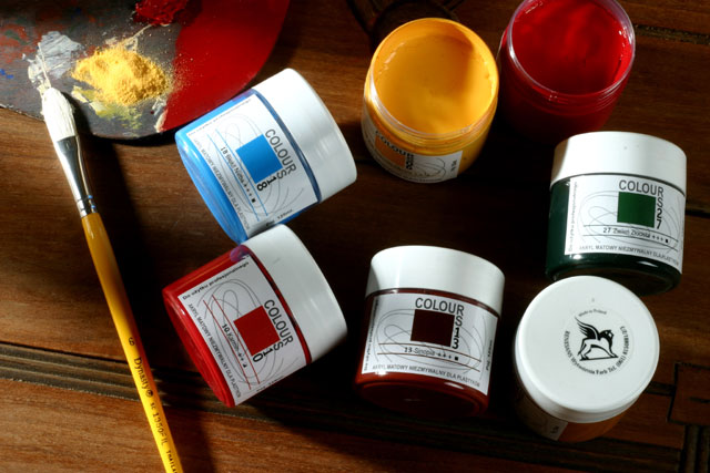 Ogólnie farby akrylowe są to nowoczesne farby (powstałe w latach sześćdziesiątych), które dziś są w grupie najczęściej wykorzystywanych ze względu na swoją praktyczność, wszechstronność, wytrzymałość i połysk. Składają się z emulsji wodnej w polimerze akrylowym, w którym nastąpiła dyspersja pigmentu. Mogą występować błyszczące, satynowe lub matowe. Podstawowa różnica pomiędzy temperami i farbami akrylowymi zawiera się w całkowitej nieodwracalności akryli, które po wyschnięciu stają się całkowicie niezmywalne. Farby Colours mają aspekt matowy i można je stosować na wielu powierzchniach takich jak płótno, papier, drewno, plastik itp. W celu ochrony przed działaniem czynników atmosferycznych malowaną powierzchnię po wyschnięciu farby należy dobrze zabezpieczyć werniksem do farb akrylowych.
