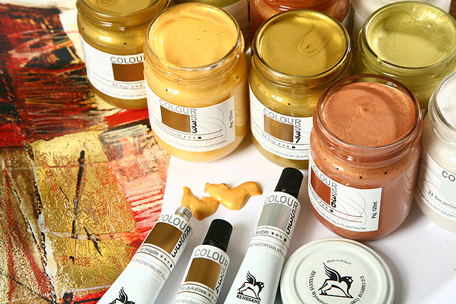 Farby akrylowe Renesans "Colours", odcienie metaliczne, słoik szklany 125 ml. Ogólnie farby akrylowe są to nowoczesne farby (powstałe w latach sześćdziesiątych), które dziś są w grupie najczęściej wykorzystywanych ze względu na swoją praktyczność, wszechstronność, wytrzymałość i połysk. Składają się z emulsji wodnej w polimerze akrylowym, w którym nastąpiła dyspersja pigmentu. Mogą występować błyszczące, satynowe lub matowe. Podstawowa różnica pomiędzy temperami i farbami akrylowymi zawiera się w całkowitej nieodwracalności akryli, które po wyschnięciu stają się całkowicie niezmywalne. Farby Colours odcienie metaliczne można stosować na wielu powierzchniach takich jak płótno, papier, drewno, plastik itp. W celu ochrony przed działaniem czynników atmosferycznych malowaną powierzchnię po wyschnięciu farby należy dobrze zabezpieczyć werniksem do farb akrylowych.