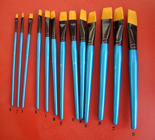 PĘDZEL SYNTETYCZNY PŁASKI , KRÓTKA NIEBIESKA RĄCZKA