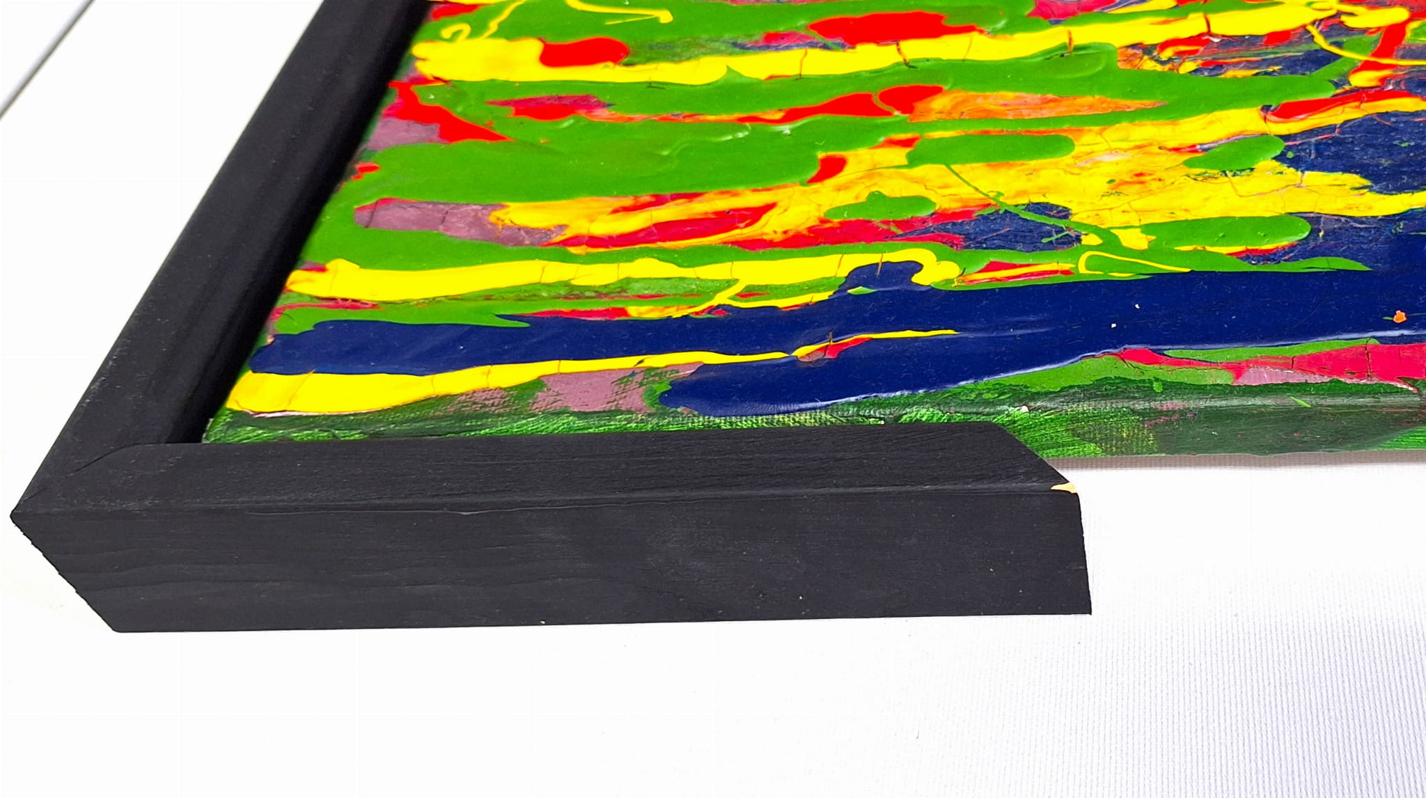 Dystans między obrazem a ramą wynosi standardowo 1 cm. Obraz mocowany jest do ramy od tylnej części wkrętami.