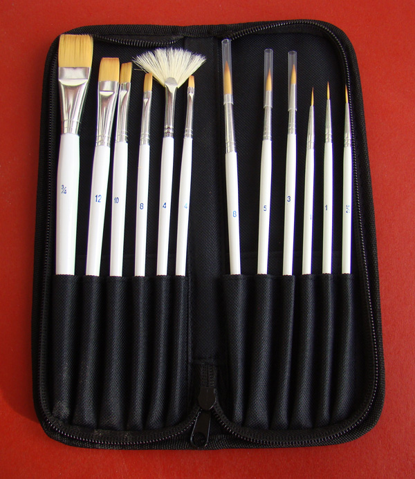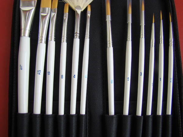 ZESTAW 12 PĘDZLI RÓŻNE ROZMIARY , PŁASKIE , OKRĄGŁE , WACHLARZ